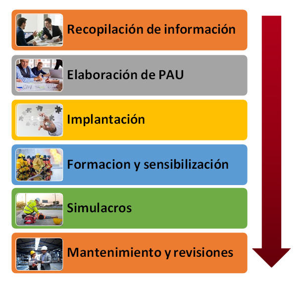 “El Plan de Autoprotección (PAU) es el documento que establece el marco orgánico y funcional previsto para un centro, establecimiento, espacio, instalación o dependencia, con el objeto de prevenir y controlar los riesgos sobre las personas y los bienes y dar respuesta adecuada a las posibles situaciones de emergencia, en la zona bajo responsabilidad del titular de la actividad, garantizando la integración de estas actuaciones con el sistema público de protección civil.”
